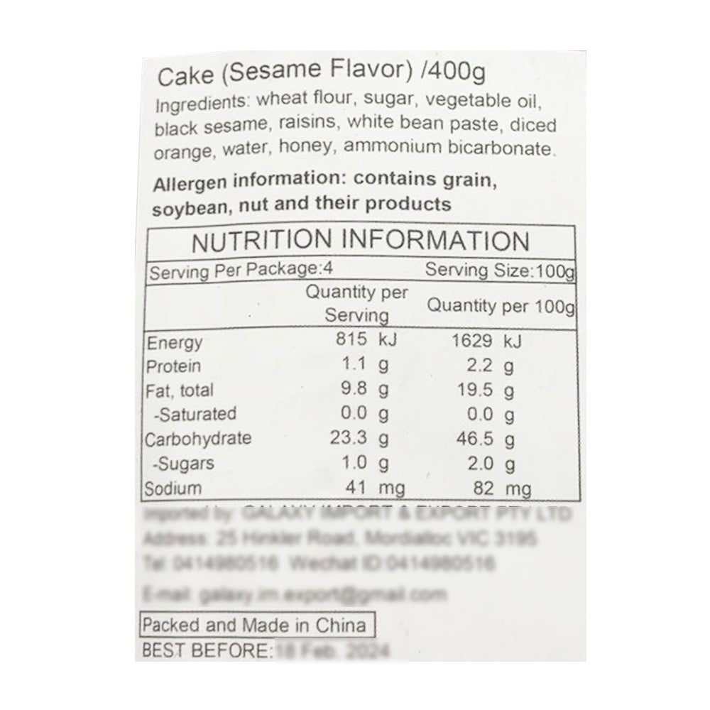 Each pack contains 4 pieces, weighing a total of 400g, made with high-quality wheat flour, black sesame, raisins, white bean paste, and other fine ingredients.