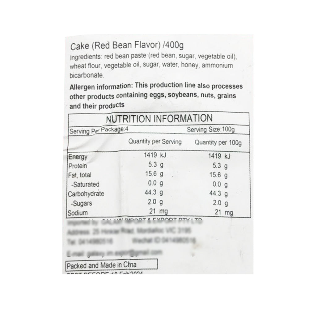 This package includes 4 pieces of mooncakes, each filled with rich and smooth red bean paste, weighing a total of 400g.