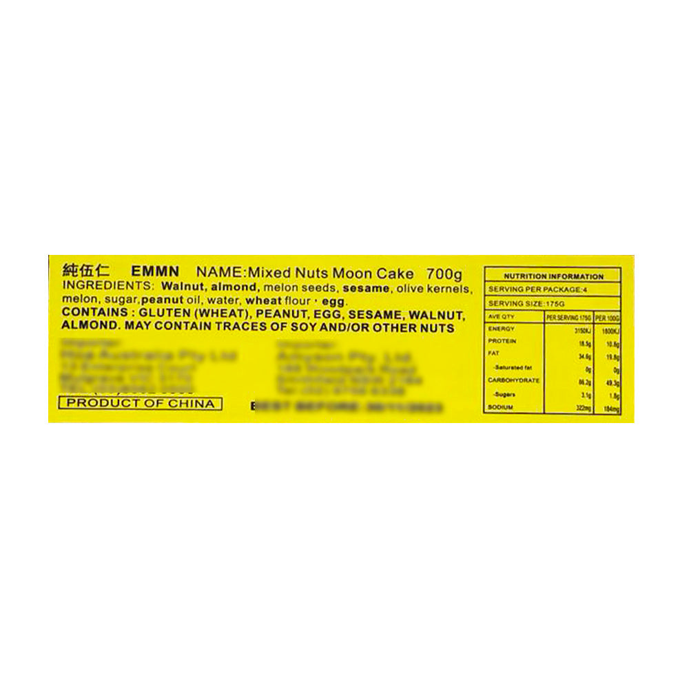 Brands : Emperor Hong KongProduct of : ChinaStorage : Room TemperatureCategories: Egg, Dairy & Bakery, UmallTags: breakfast selection, mixed nuts, moon cake