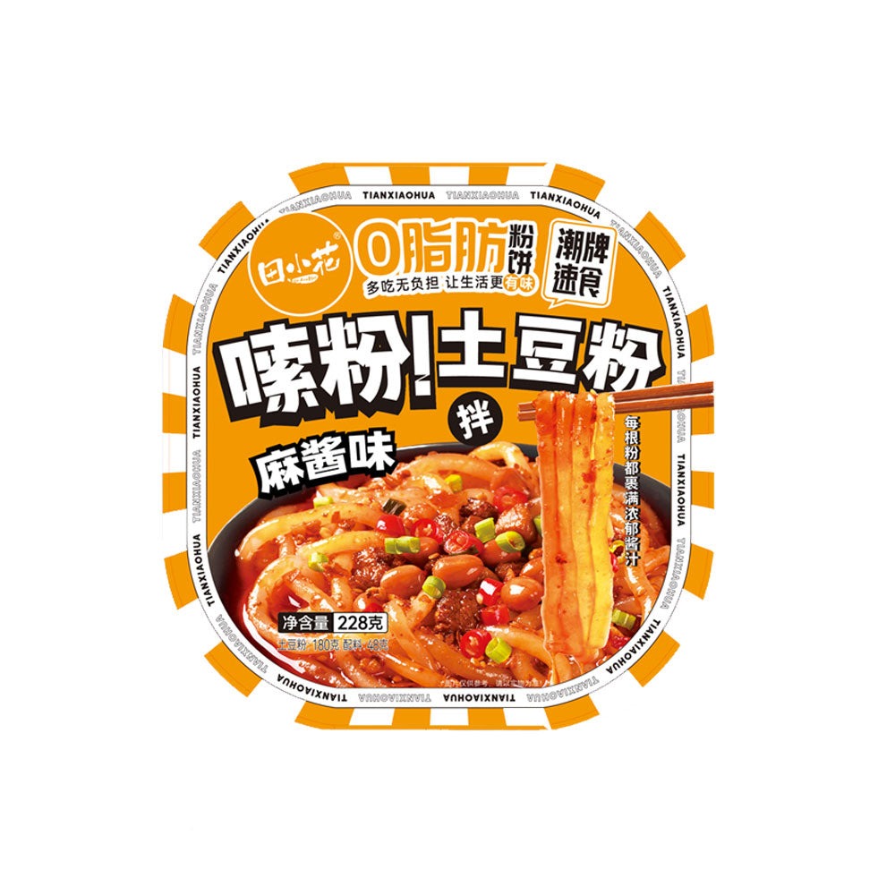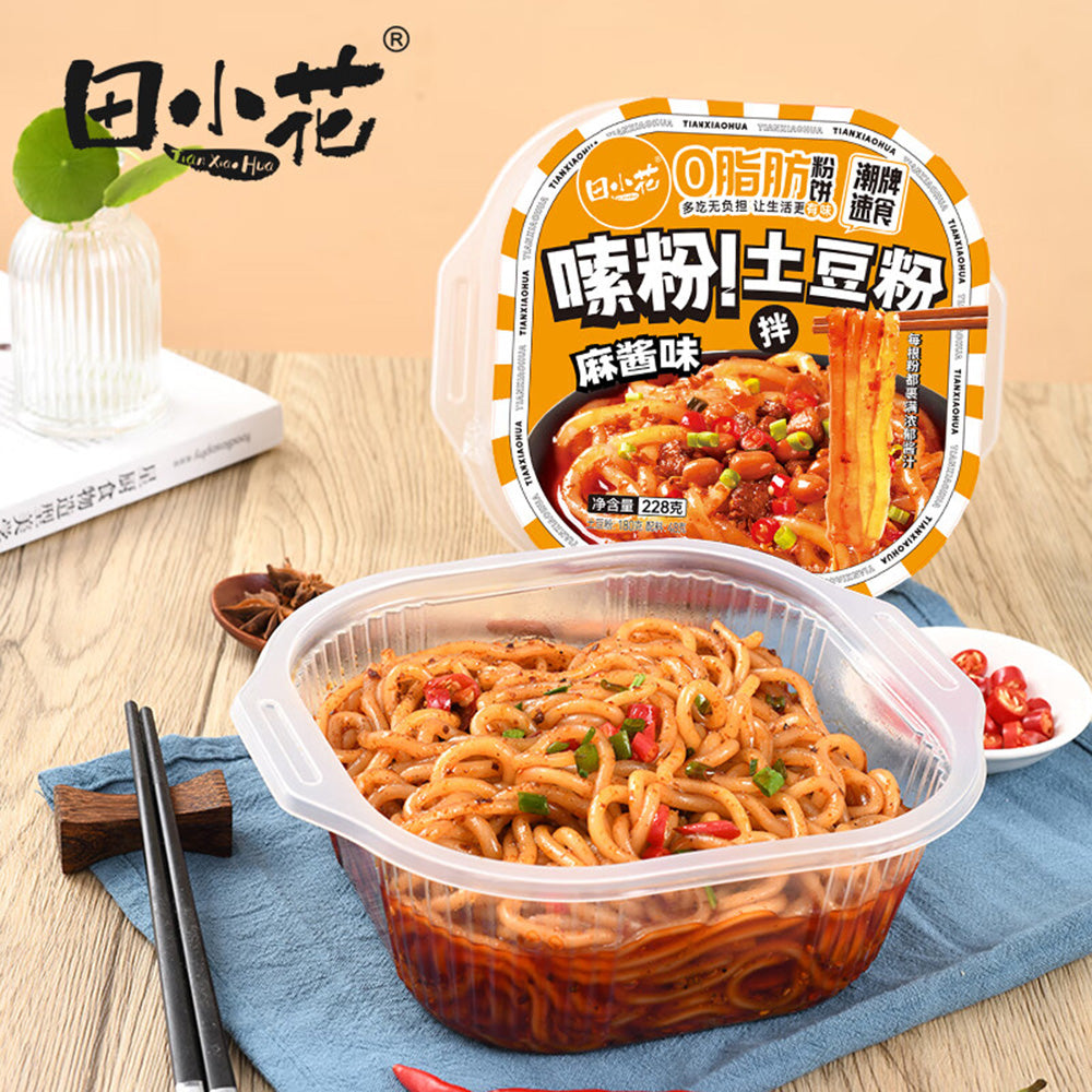 Experience the delightful taste of Tian Xia Hua Potato Noodles with Sesame Sauce Flavor, conveniently packed in a 228g container.