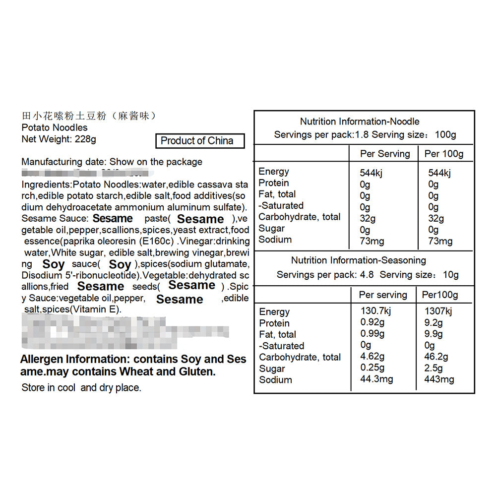 Ideal for a quick lunch, dinner, or a tasty snack, Tian Xia Hua Potato Noodles with Sesame Sauce Flavor is a must-try for noodle lovers.