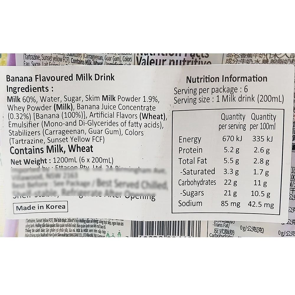 Binggrae Banana Flavored Milk Drink - 200ml x 6 Packs