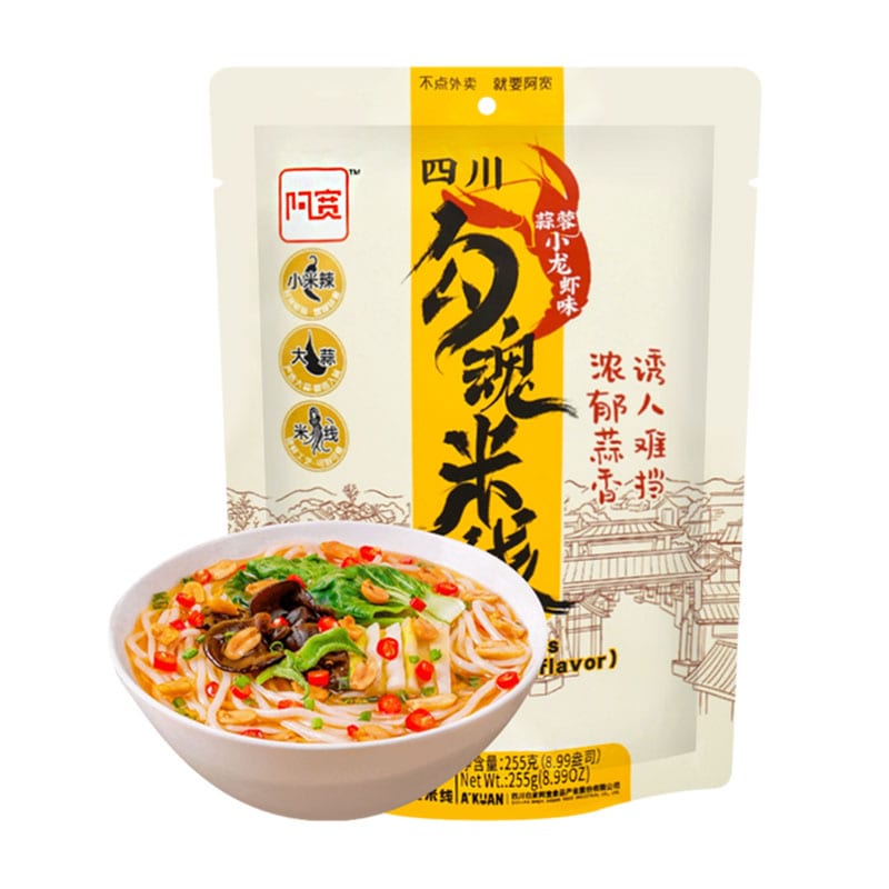Experience the bold and savory taste of A-Kuan Garlic Crayfish Flavor Rice Noodles, a delicious and convenient meal option.