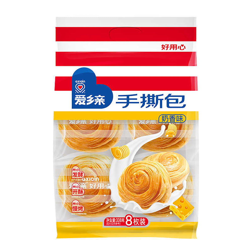 Enjoy the delightful taste of Aixiangqin Milk Flavored Tear Bread. This 338g pack contains soft and fluffy bread with a rich milk flavor, perfect for breakfast or a snack.