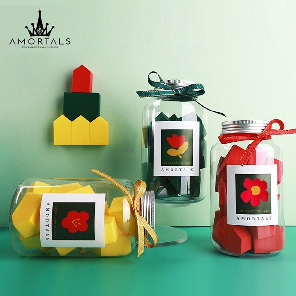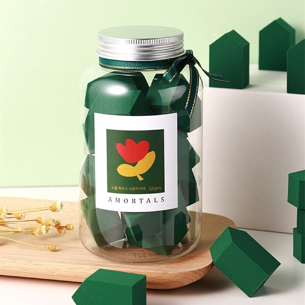 Amortals Little House Sponge Makeup Puffs - Encounter Green, Pack of 12: Soft and durable makeup puffs for flawless application.