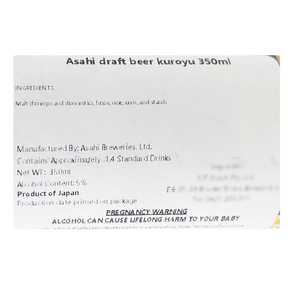 Experience the rich and smooth taste of Asahi Black Draft Beer, with an alcohol content of 5%.