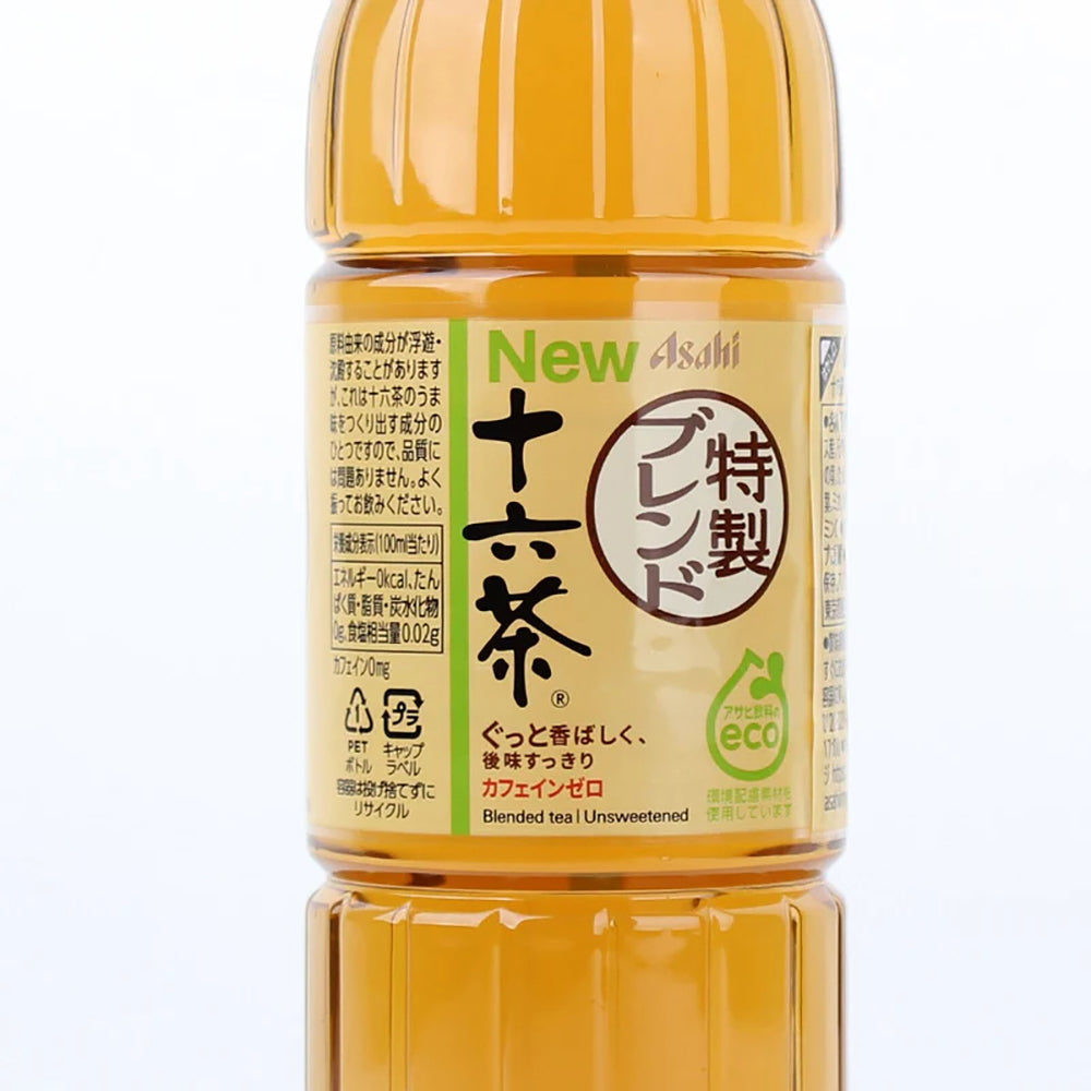 Enjoy the refreshing taste of Asahi Jurokucha Blended Tea, a unique blend of 16 natural ingredients. This 630ml bottle offers a caffeine-free, unsweetened beverage perfect for any time of day.