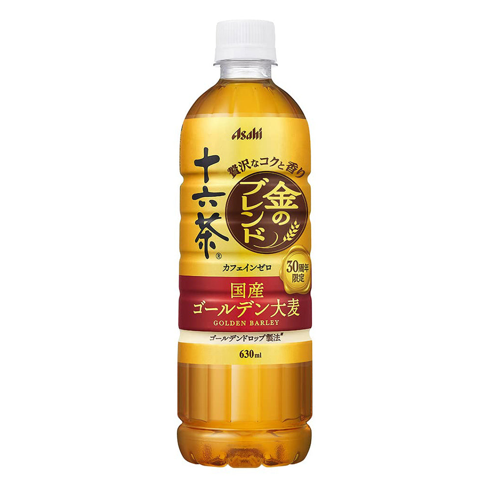 Experience the luxurious aroma and rich flavor of Asahi Jurokucha Golden Blend, a caffeine-free beverage in a convenient 630ml bottle.
