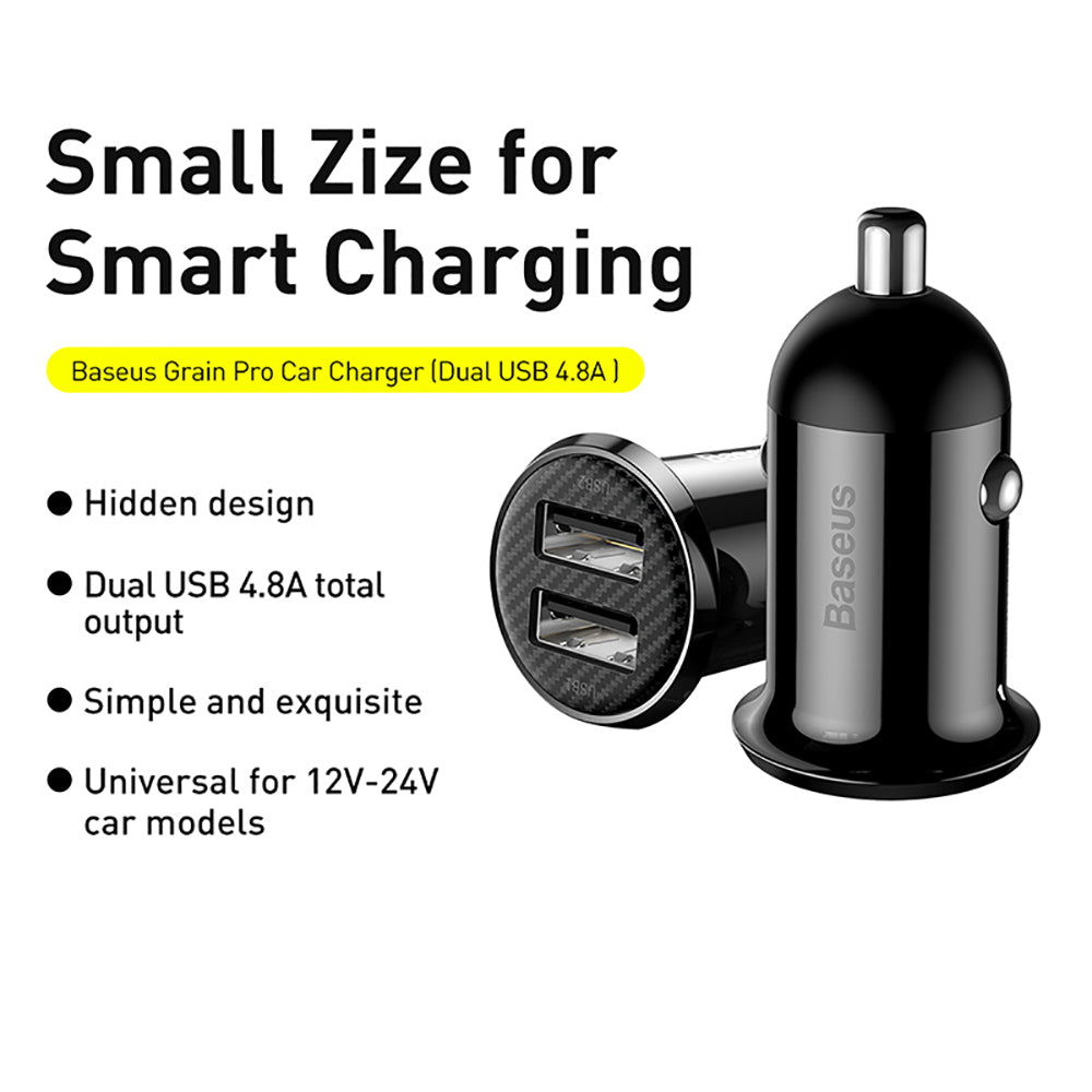 Baseus Grain Pro Dual USB Car Charger 4.8A - Black
