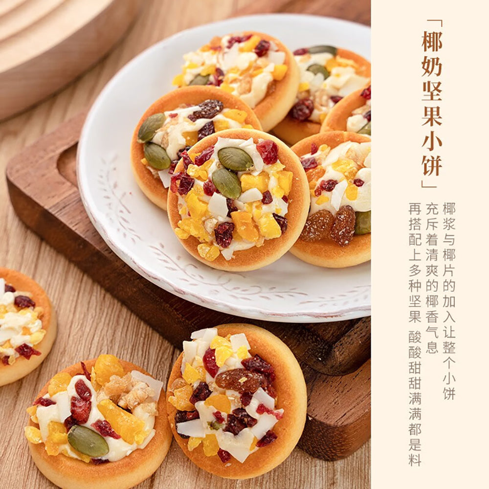 Indulge in the delightful taste of Ben Gong Le Coconut Milk Nut Cookies. These cookies are infused with the rich flavor of coconut milk and topped with a variety of crunchy nuts, making them a perfect snack for any time of the day.