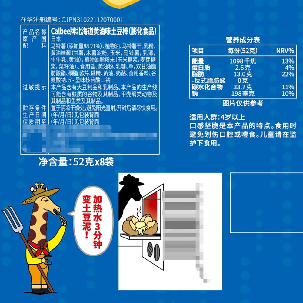 Brands : CalbeeProduct of : ChinaStorage : Room TemperatureCategories: Snacks & Confectioneries, UmallTags: butter flavor, potato snacks, snacks & confectionery