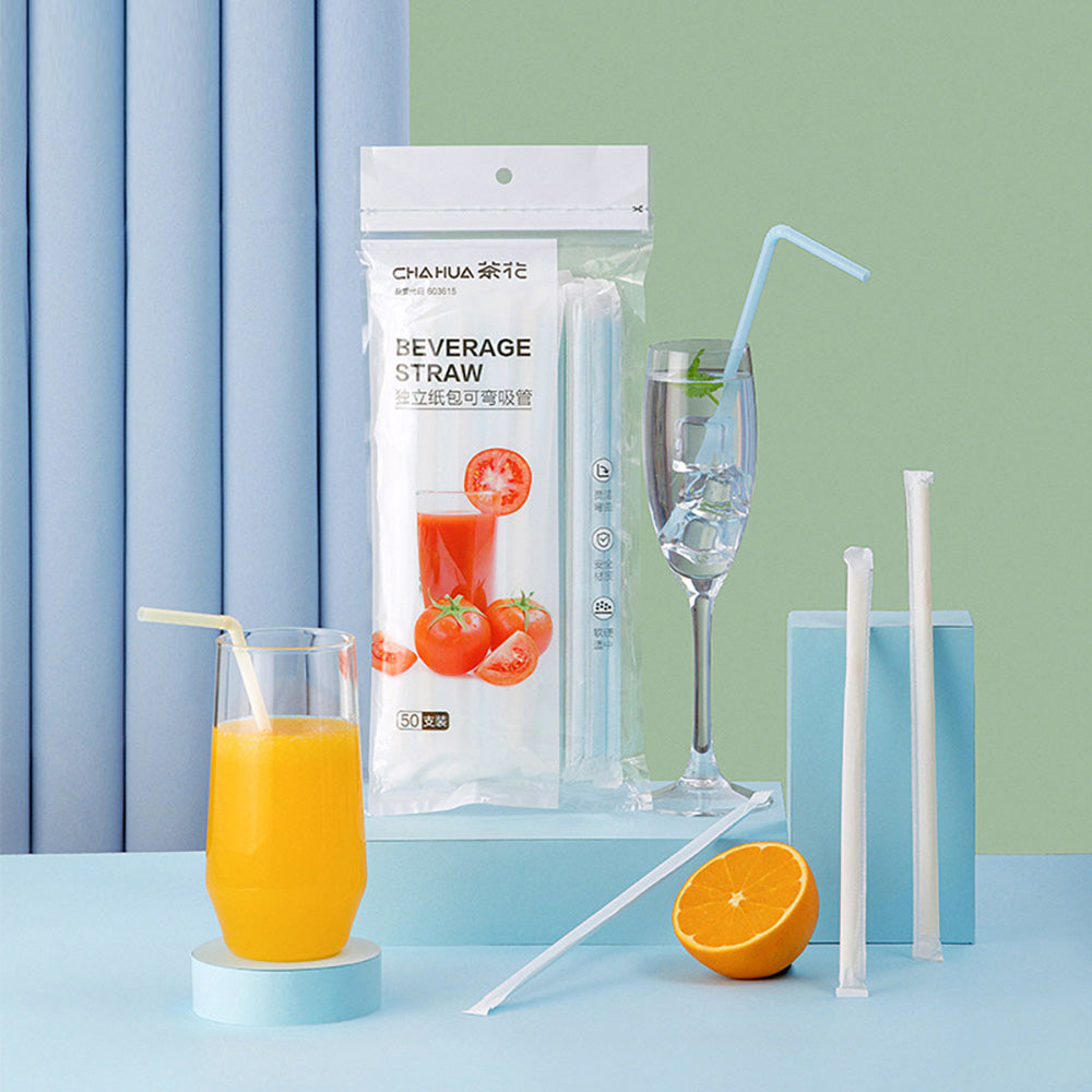 Durable, flexible, and hygienically wrapped, these 50 bendable straws from Camellia Brand offer convenience and cleanliness for any drinking need.