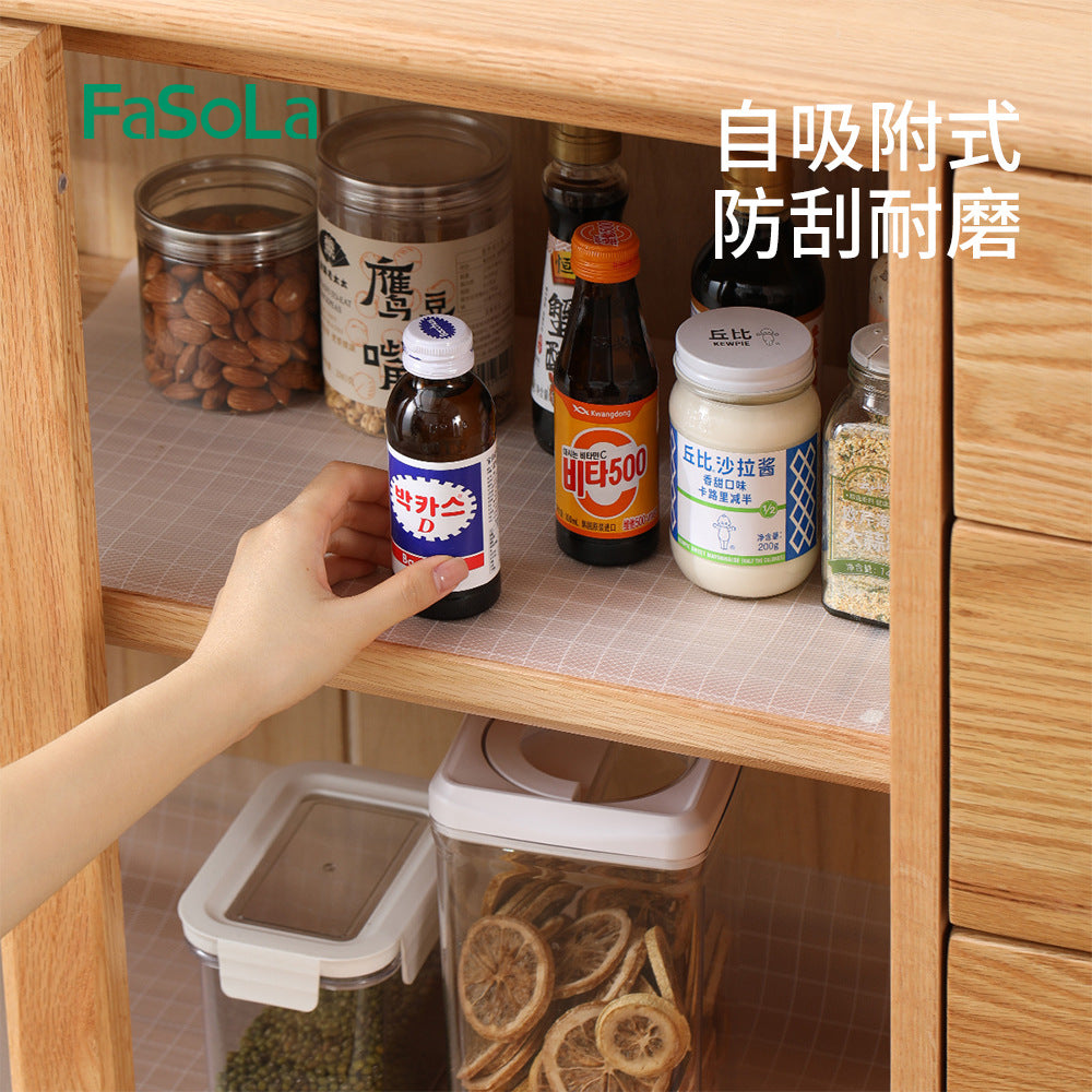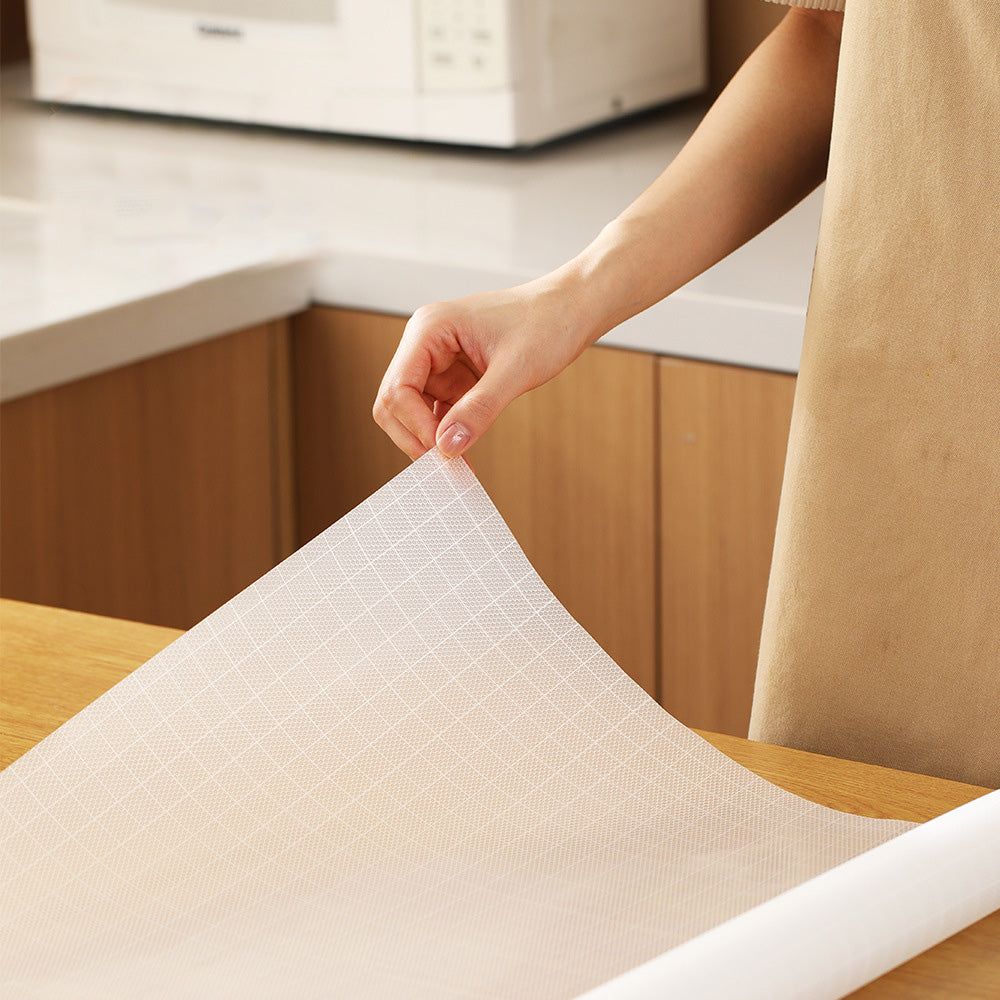 This transparent, checkered-pattern cabinet liner from FaSoLa is designed to protect your shelves while offering antibacterial properties to keep your storage spaces clean and hygienic.