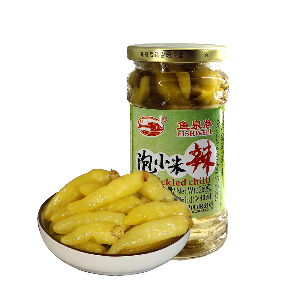 Experience the tangy and spicy flavor of Fishwell Pickled Chilli, packed in a convenient 260g jar.