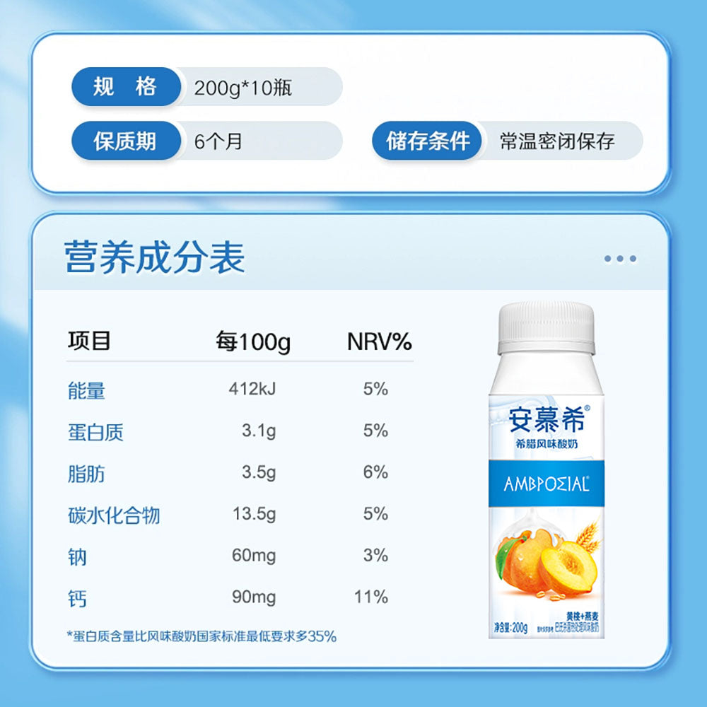 This is a full case of AMX Greek Yogurt with a delightful peach oatmeal flavor, packed in 200ml bottles. You'll receive 10 bottles per case, providing a healthy and delicious option for breakfast or snack time.