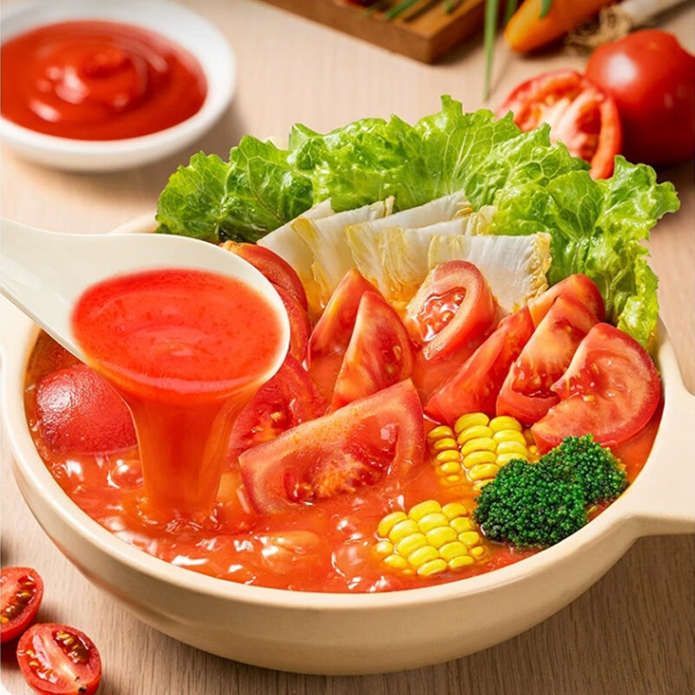 Haidilao Chef's Choice Rich Tomato Soup Base is a flavorful and convenient option for creating delicious hot pot broth at home. Each pack contains 240g of soup base, with 4 packs included in this set.