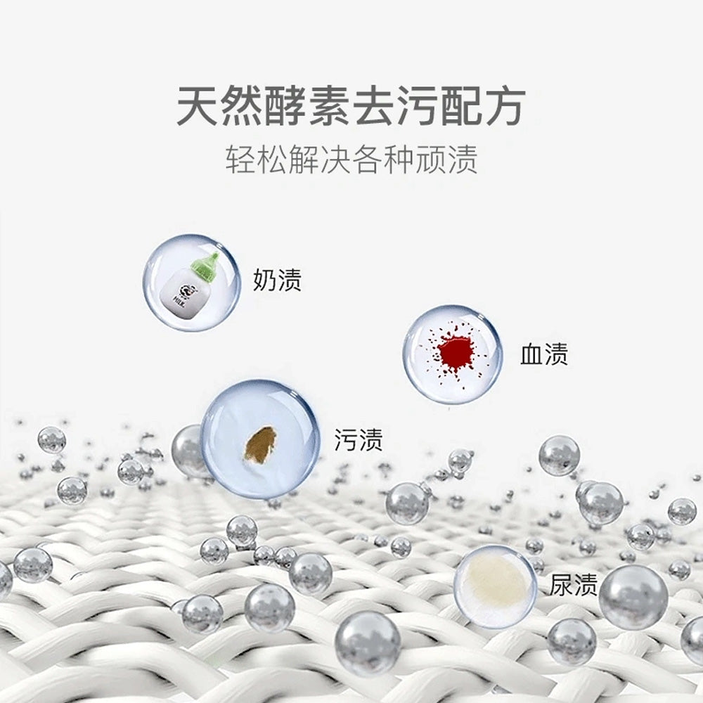 Formulated with natural enzymes, it effectively removes various stubborn stains such as milk, blood, and urine.