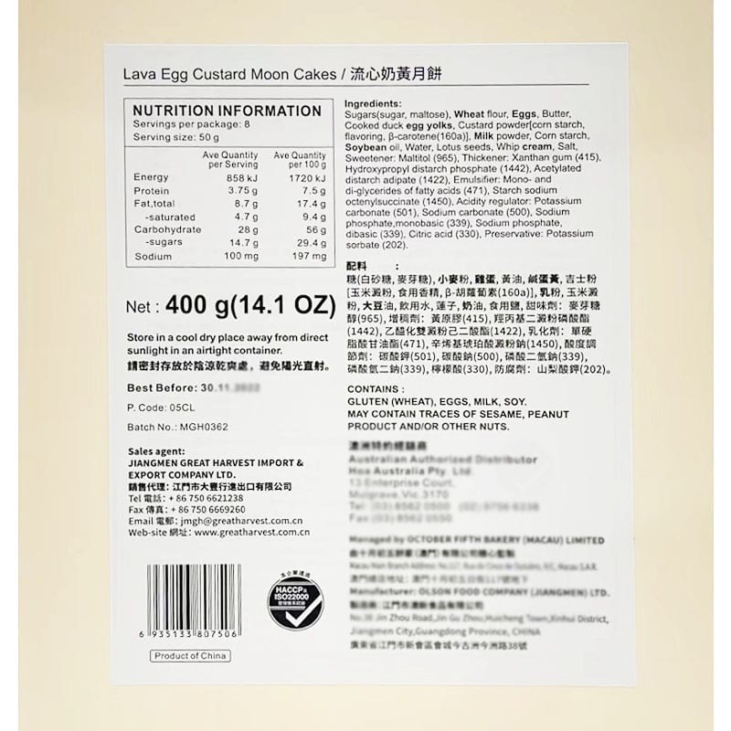 October Fifth Lava Egg Custard Mooncakes Gift Box - 8 Pieces, 400g