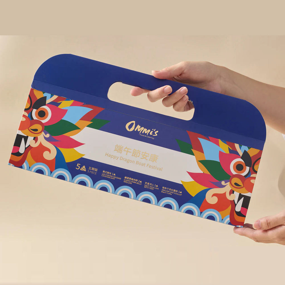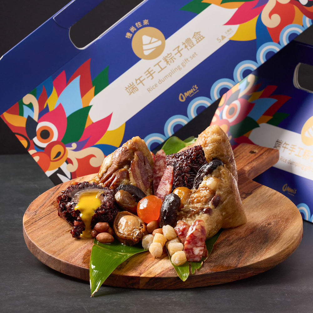 Celebrate the Dragon Boat Festival with Ommi's Frozen Rice Dumpling Gift Set, featuring 5 handcrafted rice dumplings.