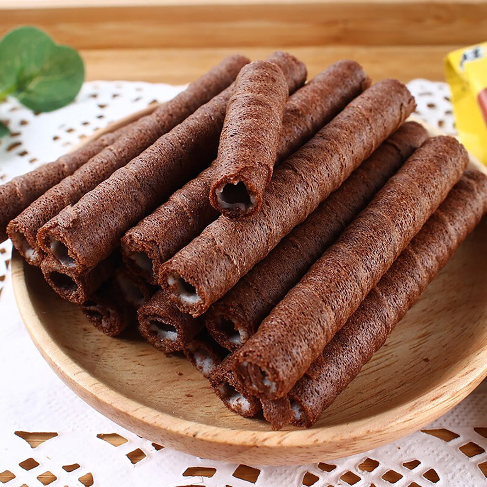 These crispy wafer rolls are filled with rich chocolate cream, offering a perfect balance of texture and flavor.