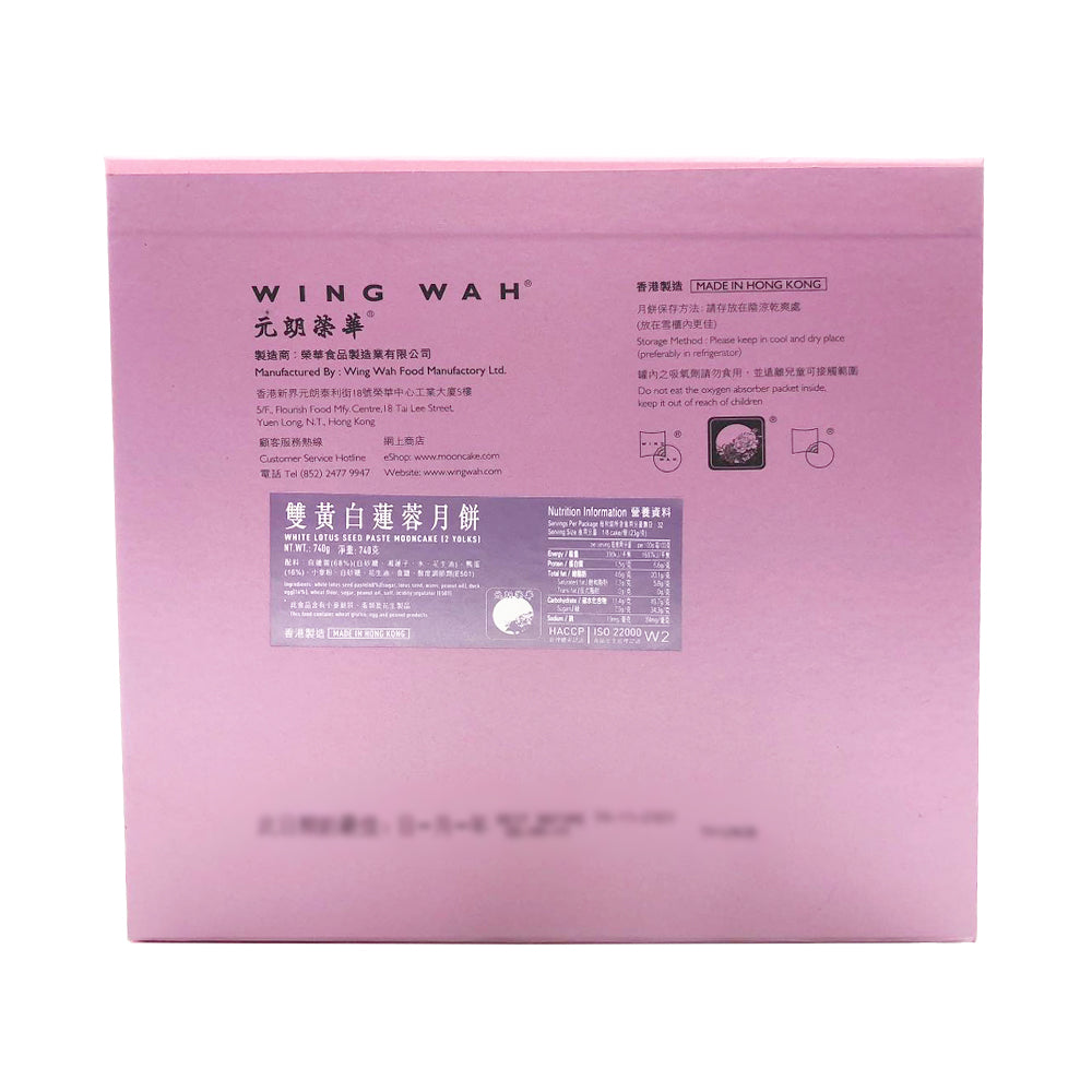 Wing Wah Double Yolk White Lotus Seed Paste Mooncakes Gift Box - 4 Pieces, 740g