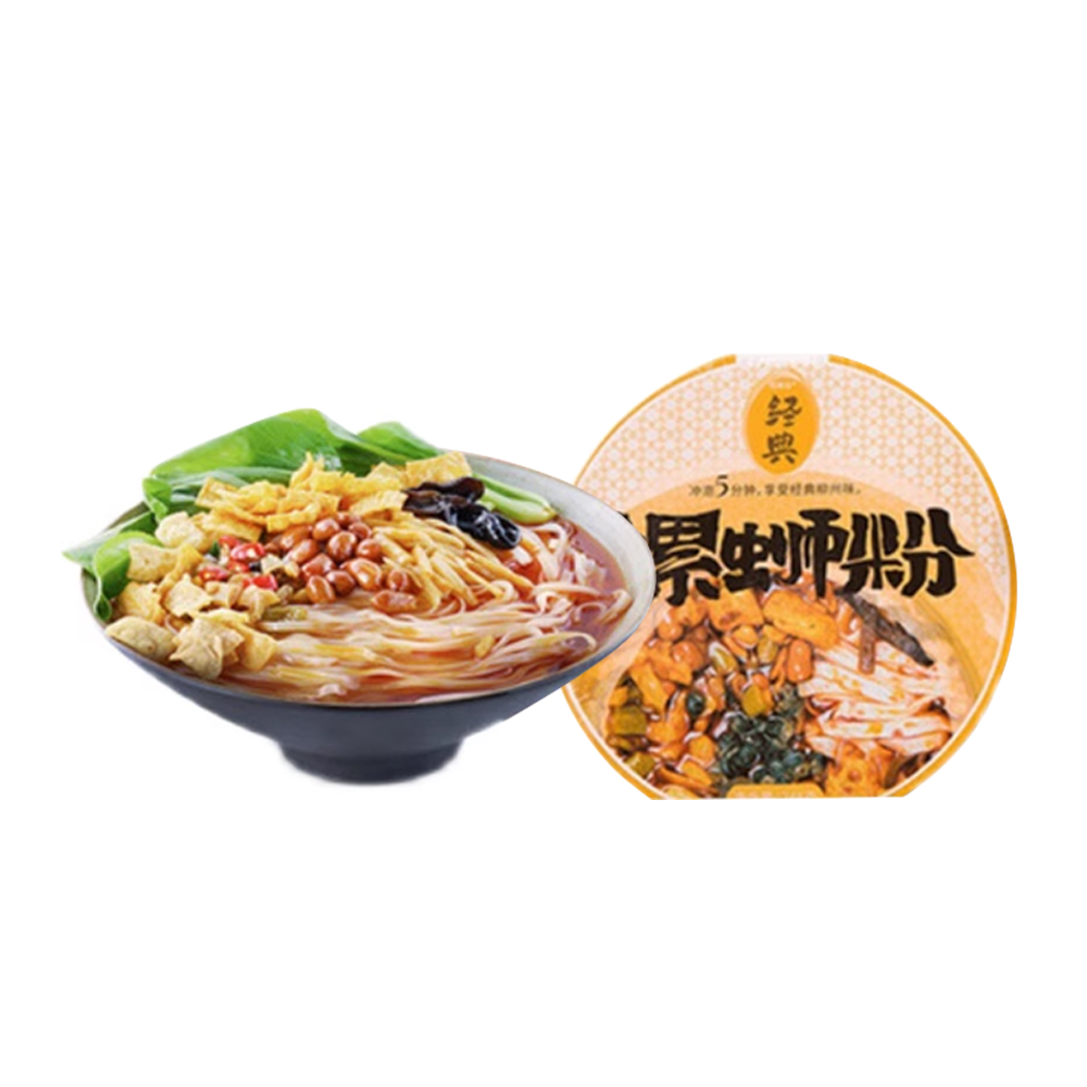 Convenient and quick to prepare classic Luo Si rice noodles in a bowl, perfect for a satisfying meal on the go.