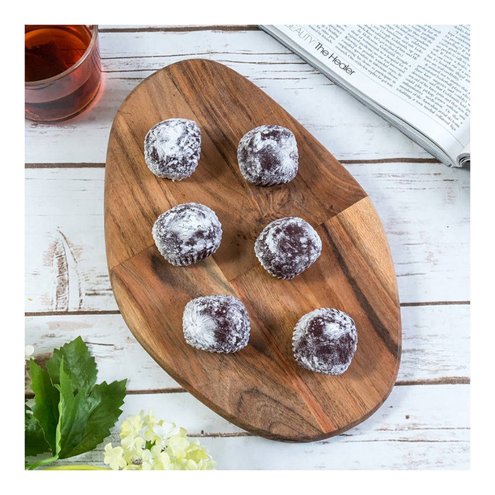 Each piece is filled with a smooth and flavorful taro paste, encased in a soft and chewy mochi exterior.